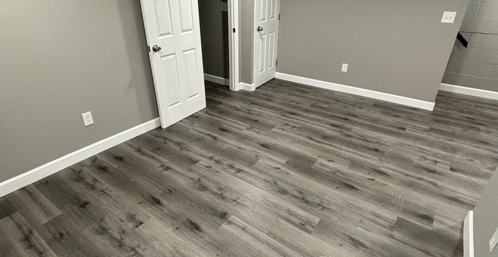 The finished basement has waterprof LVP floring, finished bathroom acroos from the bedroom as if it is a master suite.