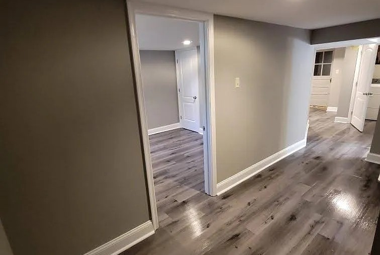 The finished basement has waterprof LVP floring, finished bathroom acroos from the bedroom as if it is a master suite.