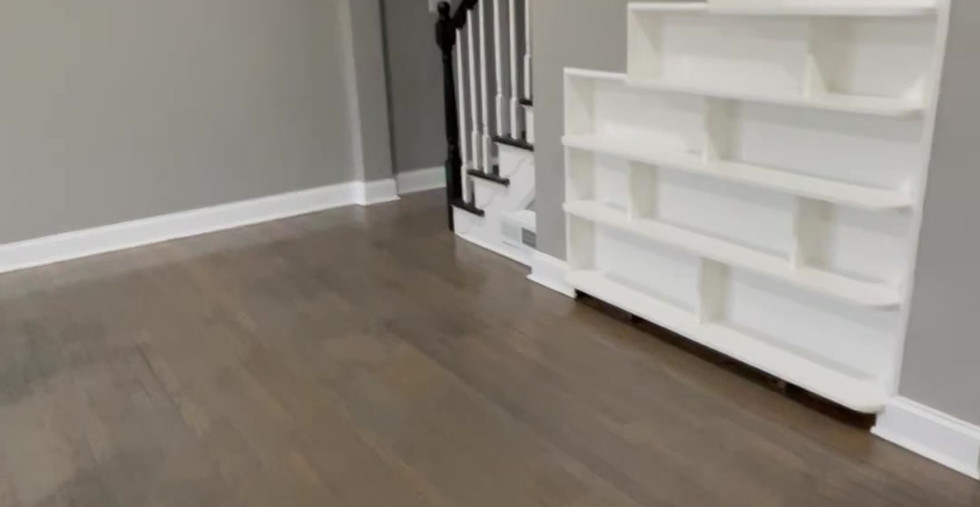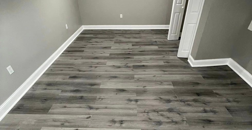 The finished basement has waterprof LVP floring, finished bathroom acroos from the bedroom as if it is a master suite.
